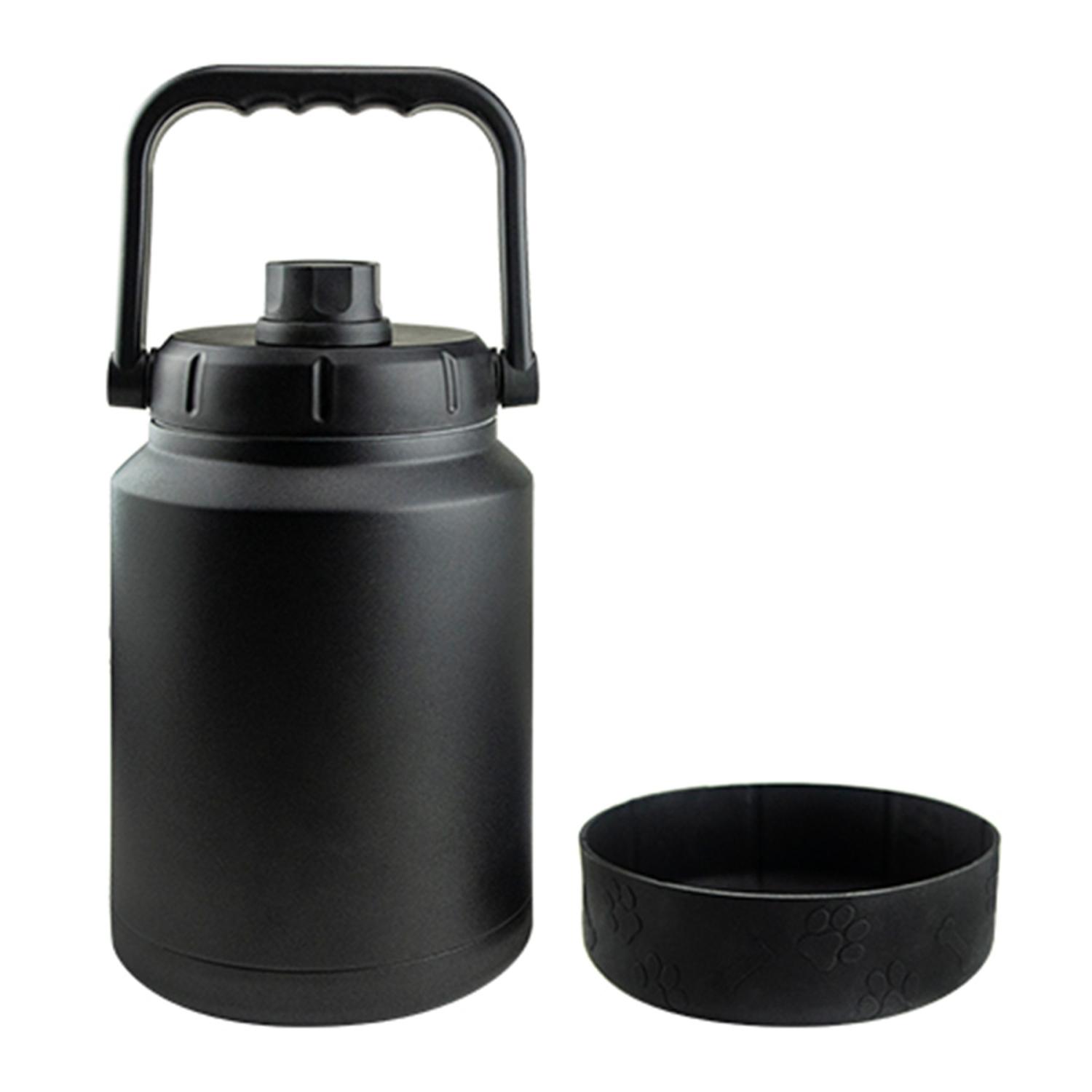Introducing our Vacuum Insulated Multi Purpose jug, designed to keep your beverages cold for a full 24 hours. This versatile jug can be used as a beer growler, ice bucket, or storage container, making it the perfect companion for any adventure. With a generous half gallon capacity, it’s ideal for all your hydration needs. The dual lid design includes a detachable dog bowl, making it convenient for you and your furry friends to stay hydrated on the go. Complete with a heavy duty handle for easy transport, this jug both functional and stylish. Complies with CCPSA, FDA, Prop 65.