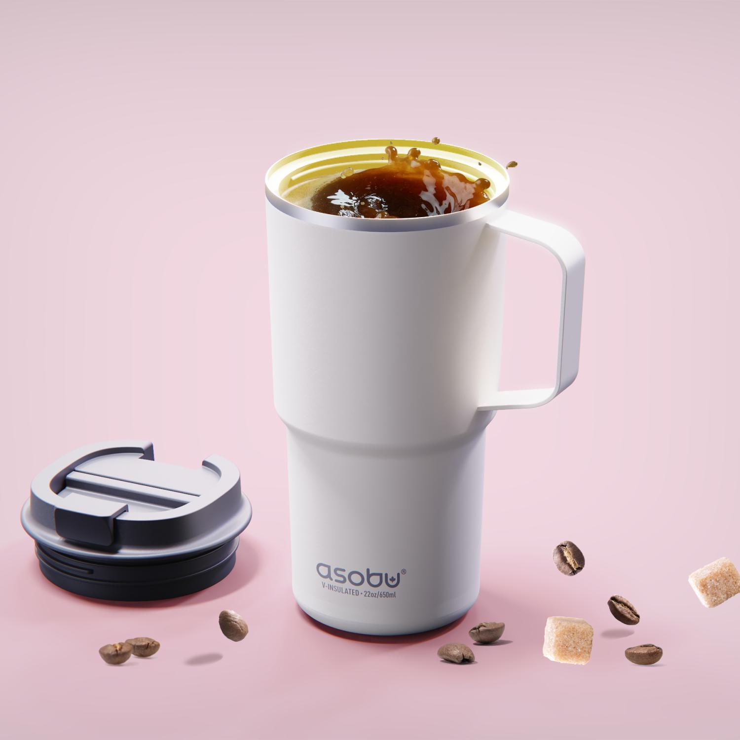 Meet our Nitro Tumbler, an extra-large, spill-proof coffee mug with the Puramicâ„¢ finish! Enjoy a 100% spill-proof experience with the familiar store-bought coffee sip lid. The ceramic lining eliminates metal tasteâ„¢ and ensures pure flavor on-the-go. The double-walled, vacuum-insulated, stainless steel construction keeps your coffee hot for hours and fits standard cup holders. With an easy-to-carry handle, it can be used for your daily adventures! Dishwasher safe, but hand washing recommended if printed. Complies with FDA, Prop 65. 3.77″ L x 3.95″ W x 7.91″ H