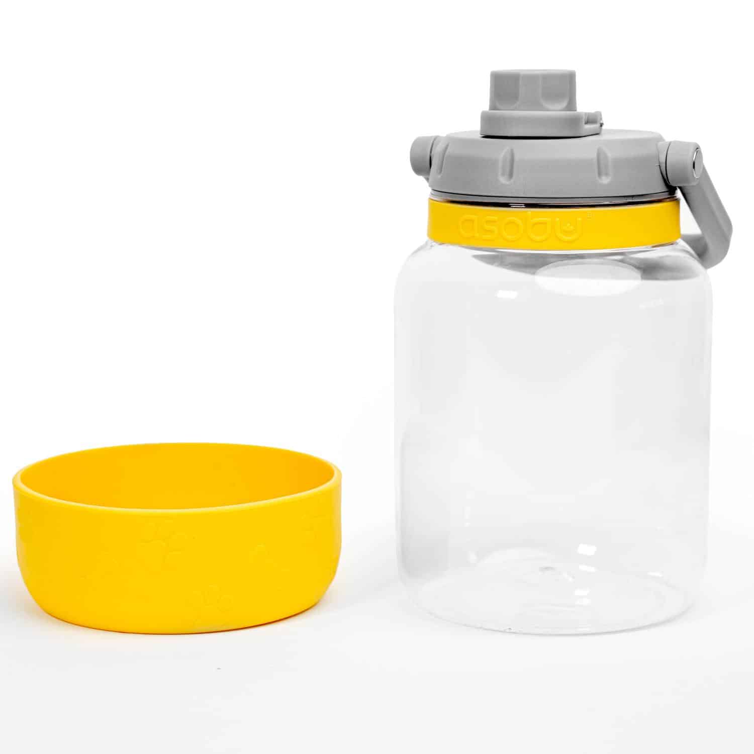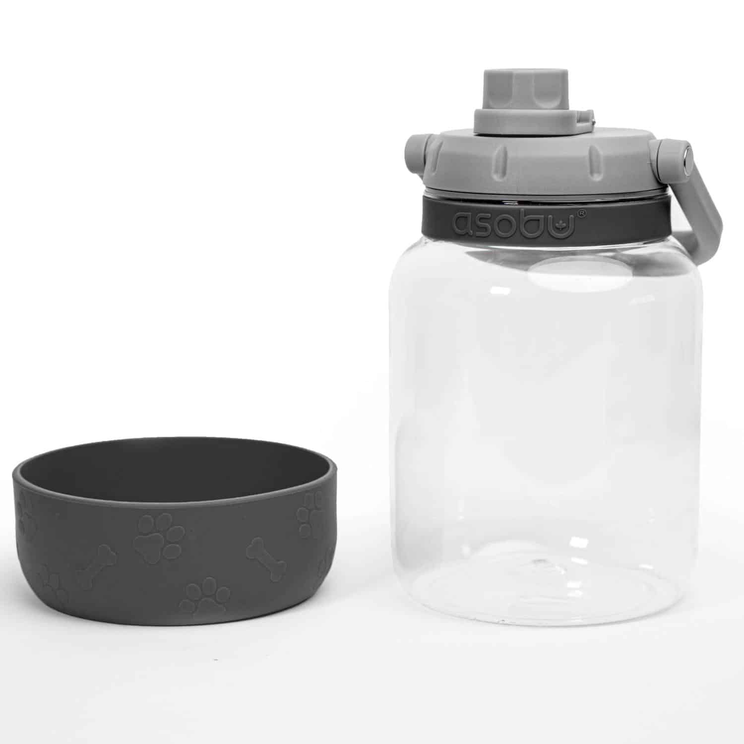 The fun lightweight and sturdy Barkley Water Jug performs best on long walks. Constructed from lightweight, heavy duty, shock and scratch resistant Tritanâ„¢ (100% non-BPA). A detachable silicone dog bowl and ergonomic handle completes this canine water carrier. Easily share water by simply removing the silicone bowl from the base and re-attach when not in use. Dishwasher safe silicone bowl. Hand washing is recommended for printed jugs. Complies with FDA, Prop 65. 5.49″ L x 5.49″ W x 8″ H